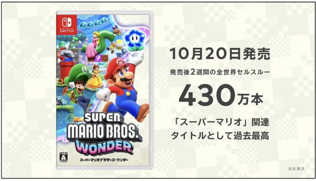 此外瑪利歐驚奇銷量也公布了,發售後兩週(應該是9天)銷量是430萬套,