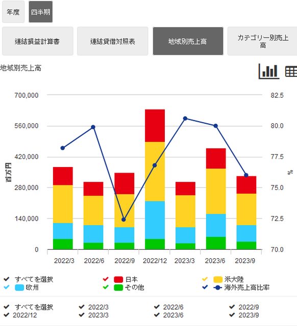 地區別營業額日本再次拉高,不過往年此季度日本佔比本來就會上調。