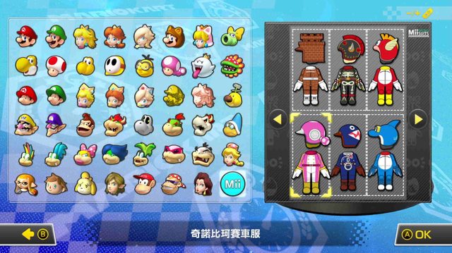 有買DLC就能免費用MII角色選擇這些服裝來玩,不需要AMIIBO