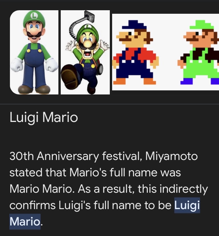 → wlwillwell: 因為兄弟全名分別是瑪利歐‧瑪利歐、路易吉‧瑪利歐 11/18 01:00
