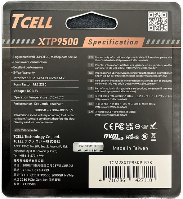型號:TCELL XTP9500 2000GB M.2 2280 PCIe Gen 4x4