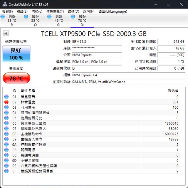 標題[開箱] TCELL XTP9500 2T M.2 PCIE Gen4