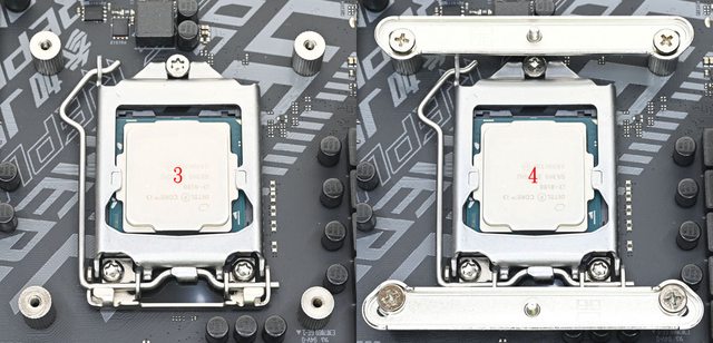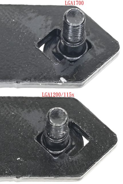 ▼LGA1700托架固定柱(左上/右上)外觀有2條溝槽,LGA1200/115x托架固定柱(左下/右下)