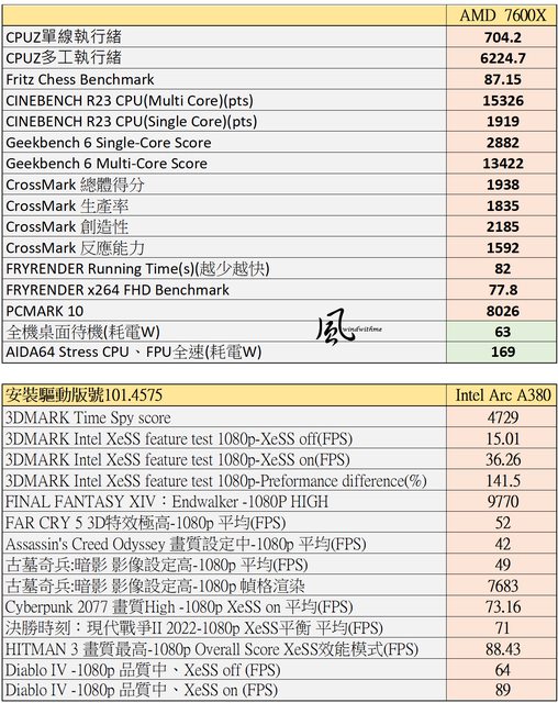 本篇實測效能與遊戲表格: