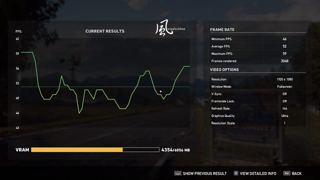 1080p FPS => 最低46、平均52、最高59