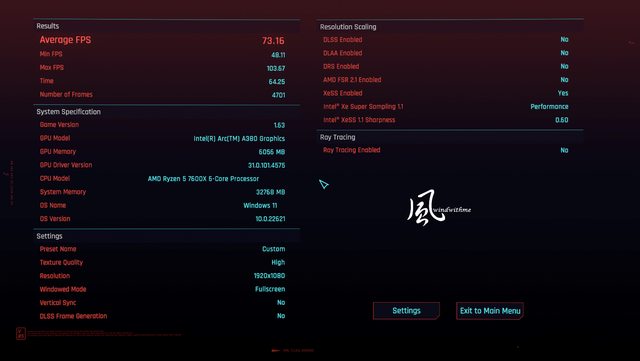 不同將特效至中等左右會有較佳表現,若遊戲有支援XeSS技術對於頁數表現提升很有感,