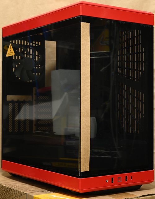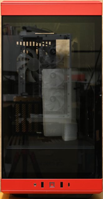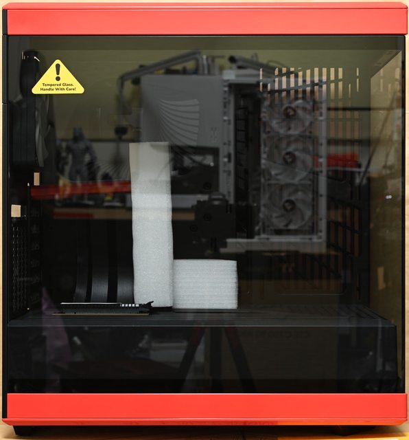 ▼出貨時會在左側和正面的強化玻璃交界處插入間隔紙板,機殼裝箱搬運時要放回去