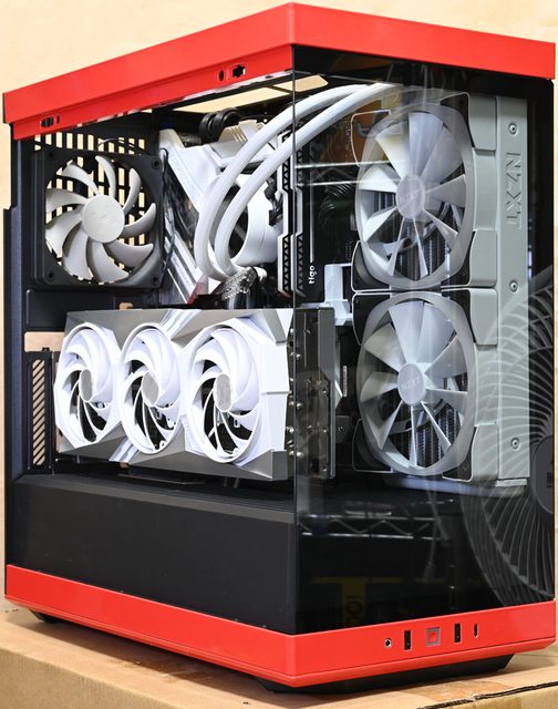 接著採用底部及右側前方風扇進氣,後方風扇排氣配置