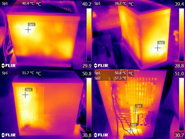 ▼CPU+GPU高負載30分鐘的左側/頂部(左上)、前方(右上)、右側/頂部(左下)、後方(右下