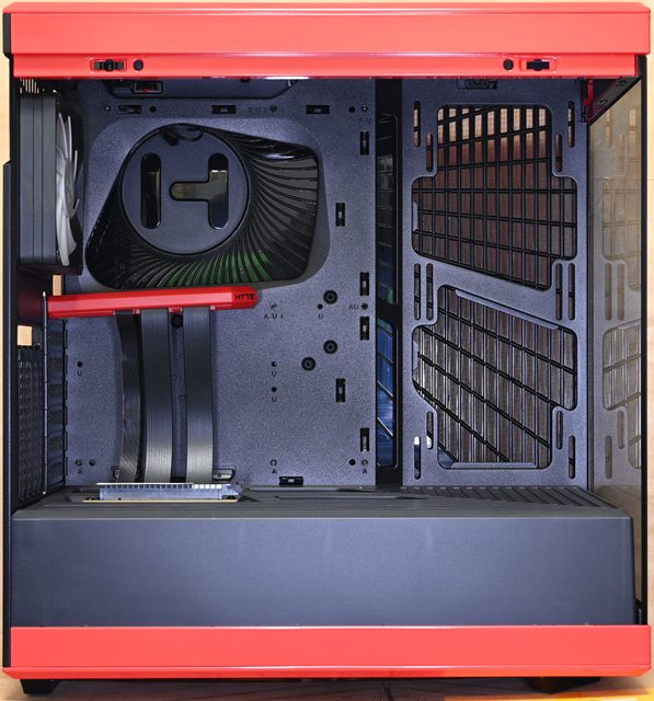 ▼機殼左側配置,主機板/介面卡安裝區與電源艙採隔離設計,支援PCIe 4.0 x16的高品