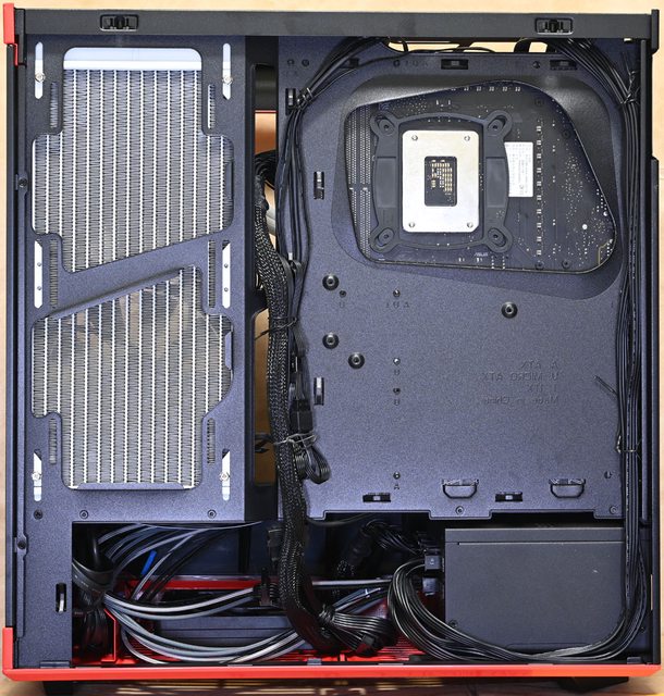 的施力凹槽,右上方通風口可裝1個120mm風扇,水冷排可裝到120mm。下方電源供應器安