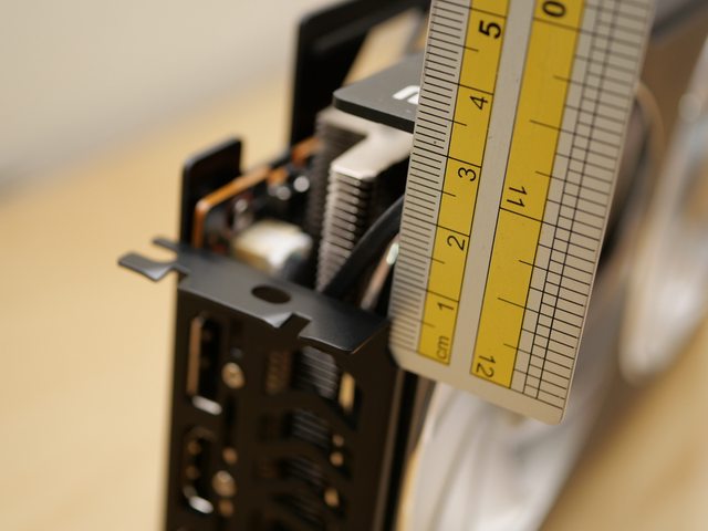 卡本體高,因為大尺寸風扇的緣故,稍微越肩了3.5公分