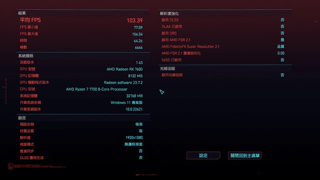 RX7600 Hellhound:平均 80 1% Low 幀 77