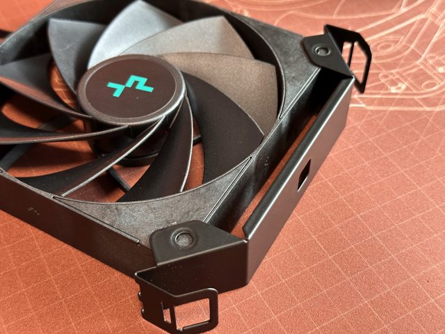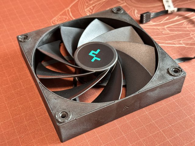 後出風採用反向扇葉、標準25mm厚度的12cm風扇,本來依風扇框體顏色個人以為是使用玻