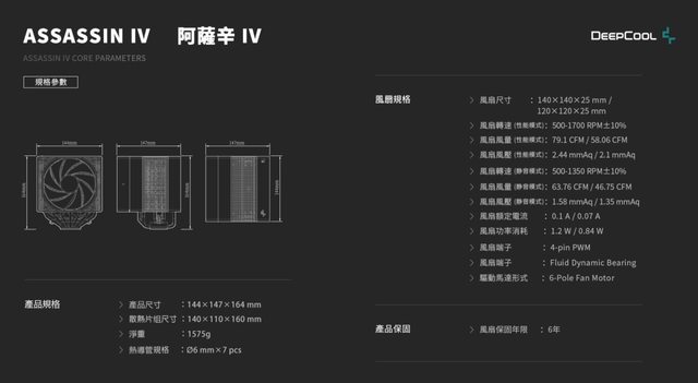 4、風扇預設靜音/性能兩種模式,採用FDB軸承及三相六極馬達,且提供6年保固。