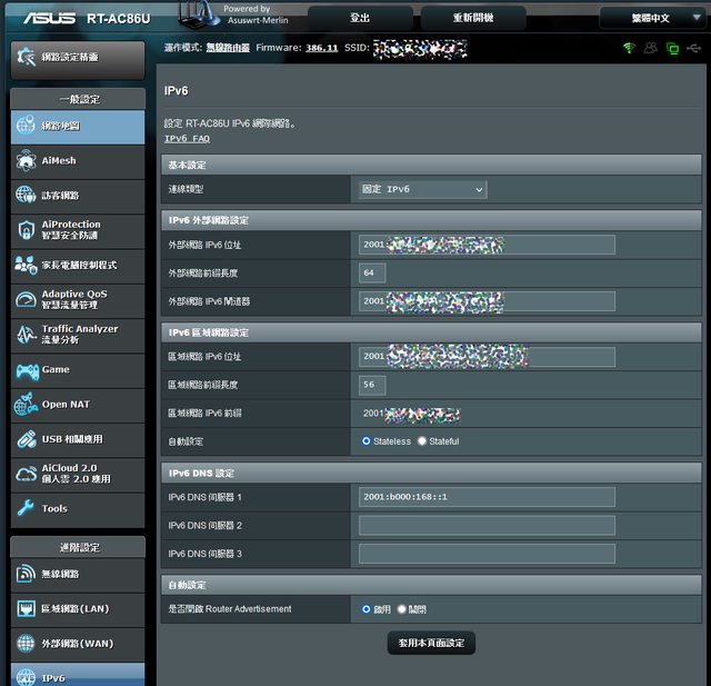 IPv4部分比較簡單只要依序填入就好,IPv6部分要看你的連線途徑是走路由器還是PC直連