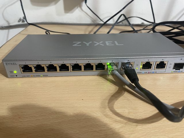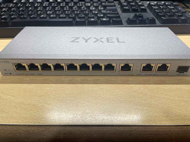 中華給的XGS1250-12是11個RJ-45+1個SFP+模組。有8個RJ-45只支援至1Gbps,9~12的Port