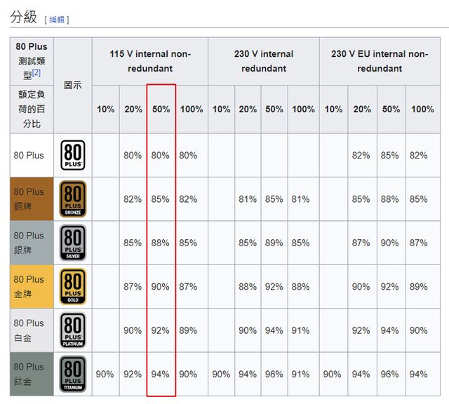 如果依軟體顯示瓦數計算轉換率,則大約是87.8%、89.0%、90.8%,雖然跟wiki上115V、