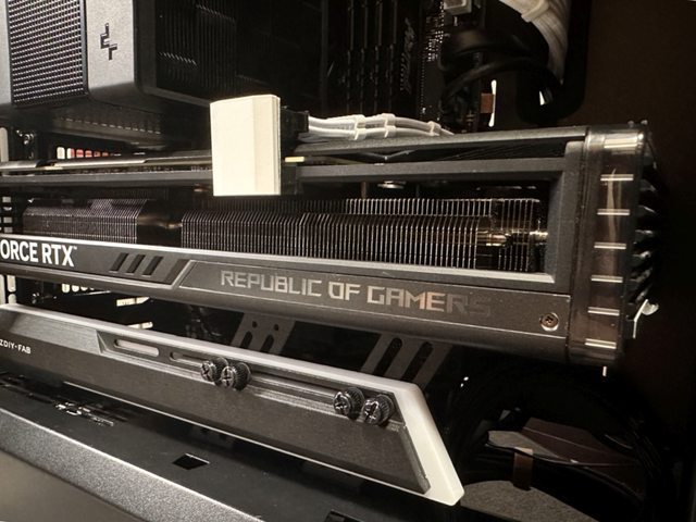 這款支撐架相較一般鎖PCI-E位置的長條狀支撐架優勢在於有兩個固定/支撐點,鎖PCI-E