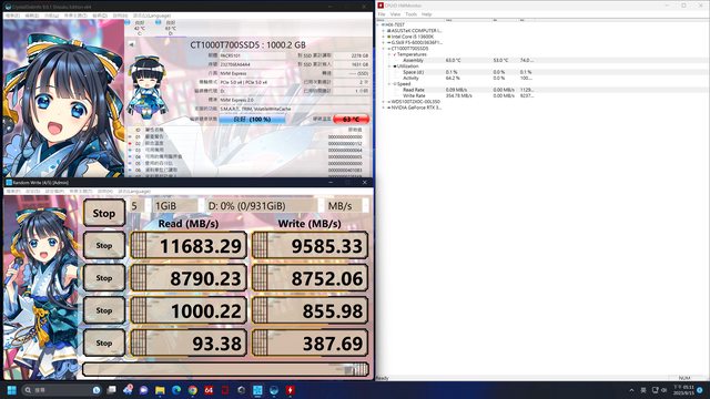 讀取跑到11683MB/s,寫入為9585MB/s