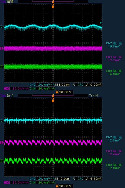 17.2mV/11.2mV/13.2mV,高頻漣波分別為12.8mV/11.6mV/13.2mV