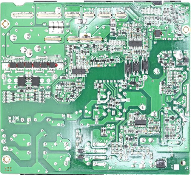 ○主電路板背面焊點做工良好,於二次側同步整流MOSFET區域加上導熱墊片