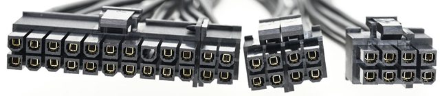 ▼主機板/處理器/顯示卡電源模組化線路接頭採用鍍金高電流金屬連接器