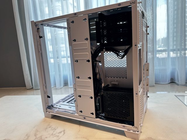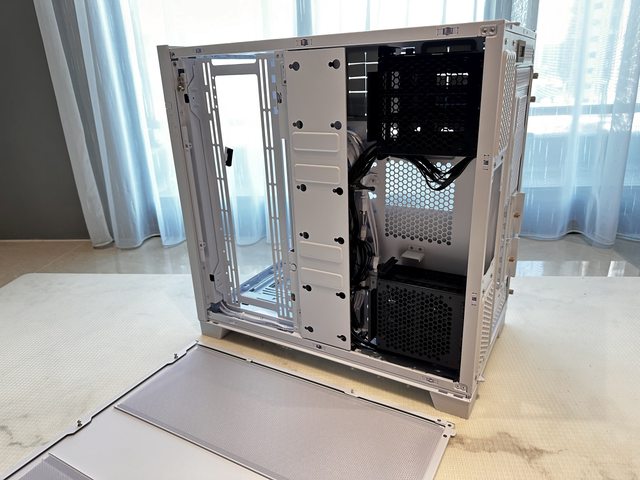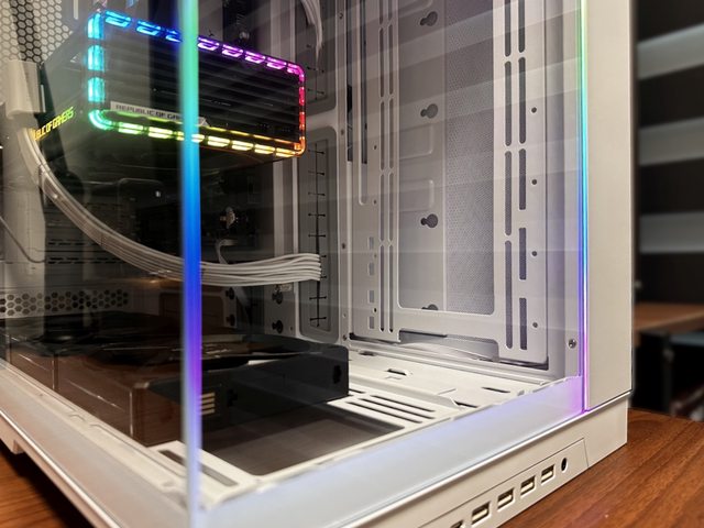 通電!O11D EVO XL畢竟是全塔機殼,白色版又是全透的玻璃側板,在風扇/冷排沒塞滿的