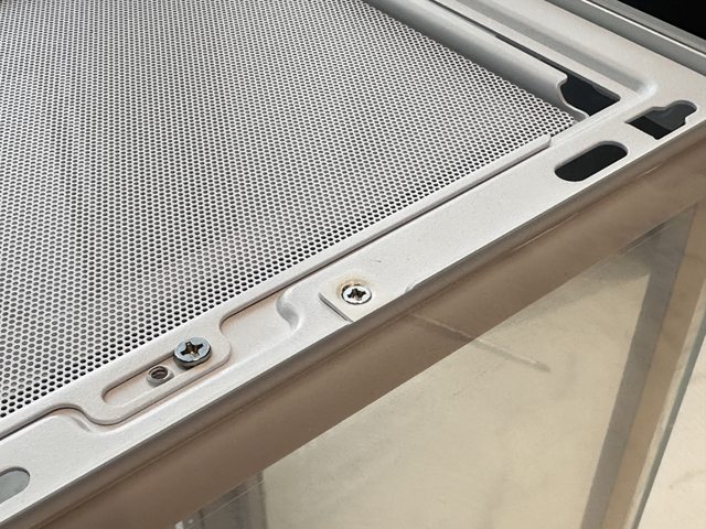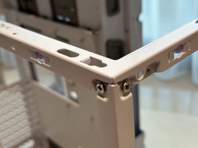 兩片玻璃側板四周貼有金屬框架,且有額外的固定螺絲,出場時也已預裝上,建議在搬運