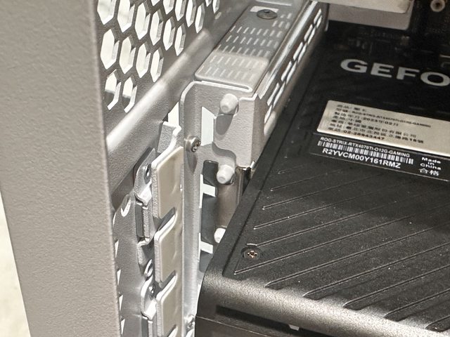 雖然顯示卡支撐位置只有一小片,但意外地能與ROG卡完美搭配,調整起來相當順手。