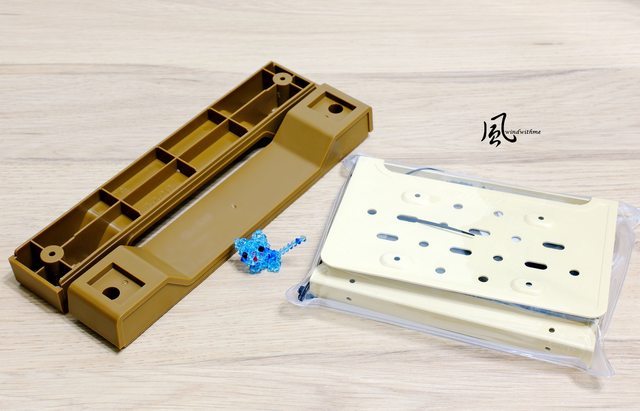 左方為手把模式時需要另外安裝的底座,右方理線擋板兼具2.5吋SSD安裝功能與鐳雕螺絲