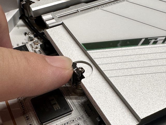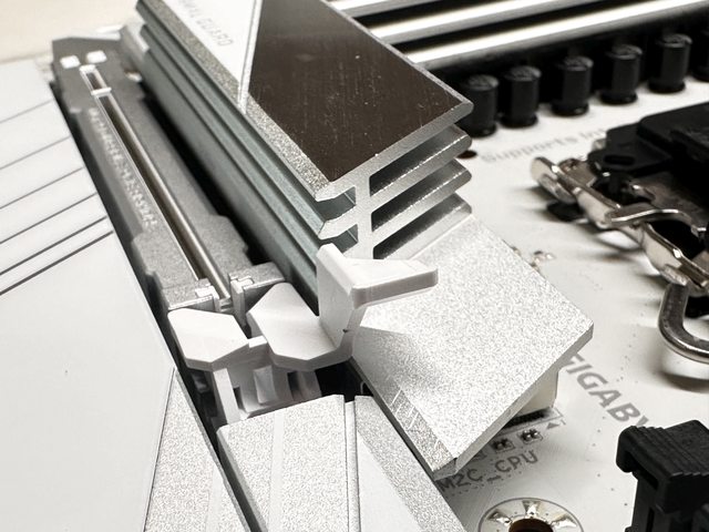 巨大鳥頭SSD散熱片的一側為EZ-Latch Click,另一側則為螺柱卡扣。