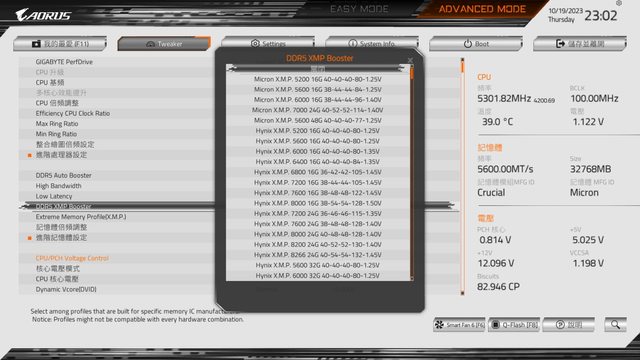 PRO X在BIOS內的DDR5 XMP Booster功能,可從各廠記憶體設定參數的資料庫中直接抓取