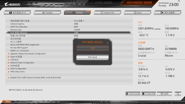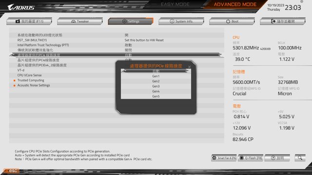 雖然設定內可調整處理器的PCI-E速度,但個人試驗即便手動調整為Gen5,安裝上Gen4的