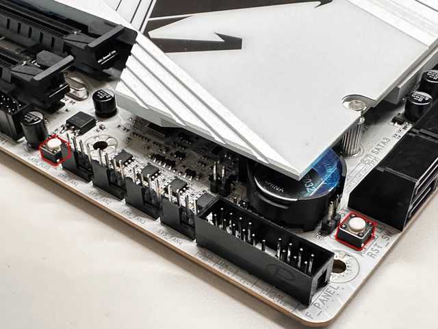 主機板右下設有重啟及免CPU更新BIOS的Q Flash Plus按鈕,能再加個開機按鈕就功德圓