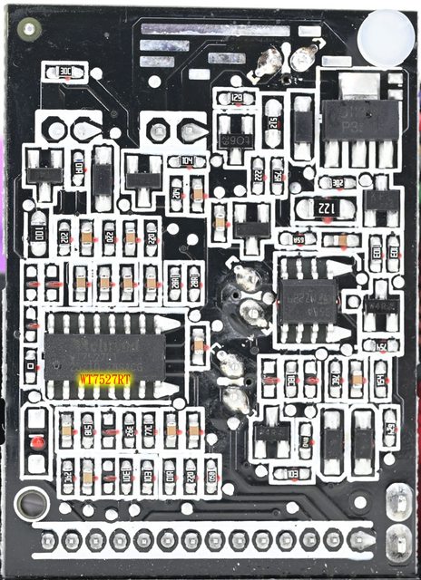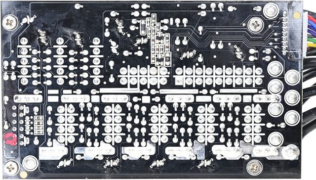 ○主電路板背面焊點做工良好,於二次側區域貼上導熱墊片,大電流線路有敷錫處理,