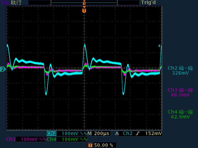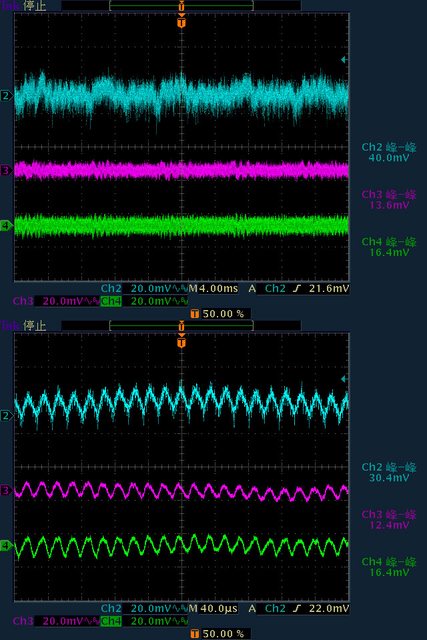 40mV/13.6mV/16.4mV,高頻漣波分別為30.4mV/12.4mV/16.4mV