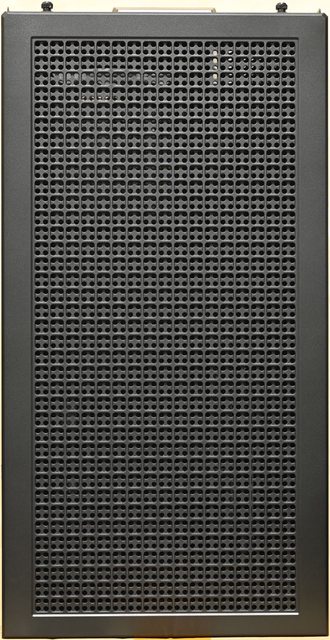 ▼右側前方風扇安裝位置為網狀設計,中間有長方形開口,長條形固定孔可安裝2個120mm