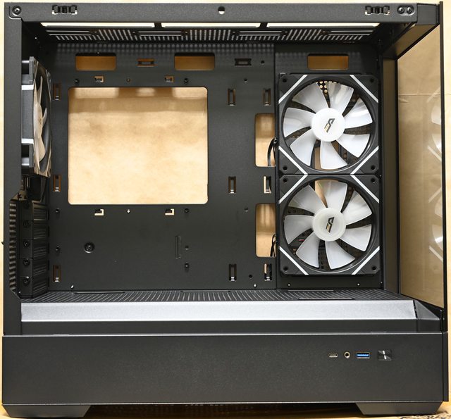右側前方風扇安裝空間:2個120mm(預裝2個反向ARGB發光120mm風扇)