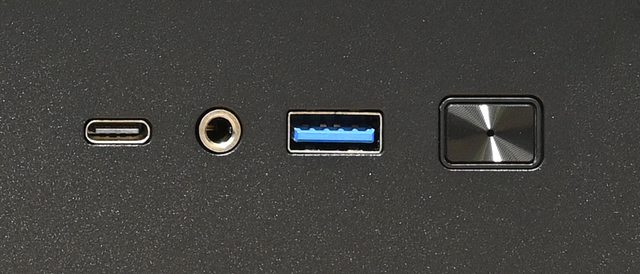 Type-C、4極耳機麥克風3.5mm插座、1個USB3.2 Type-A、長方形電源按鈕/電源指示燈(中