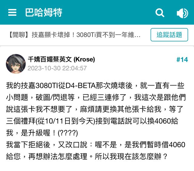→ BJshow: 0都沒3080ti強 不過最後爭取到4080了==42.74.227.98 11/13 14:41