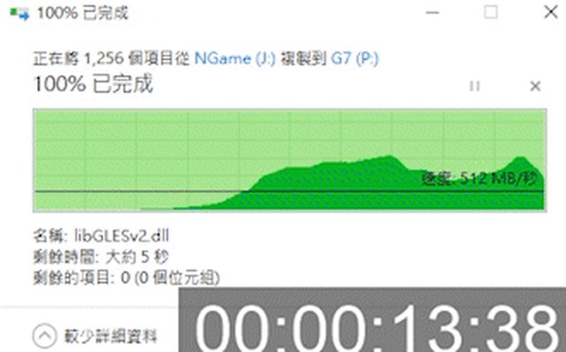起初跑1.3g速度複製過半的時候的時候會掉落,但還是可以維持700-900mb