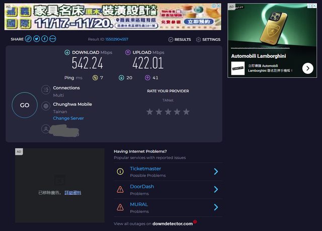 其實本來有測試cloudflare速度 但我沒想到chrome會直接把網頁關了