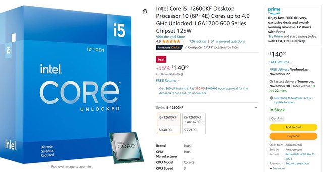 推 slein: 12600K配合信用卡,141.74美元,有夠香 114.34.231.211 11/19 09:49