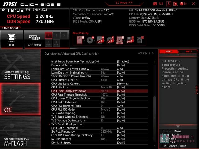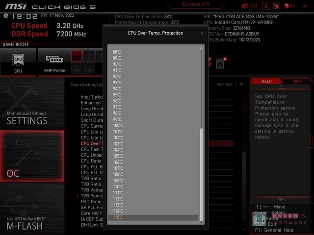 CPU Over temp. Protection 和 Fast Throttle Threshold 溫度也可以調整,最多都可以