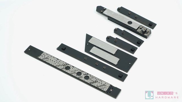 微星使用金屬裝甲遮掩底下的鋁擠式和鰭片式散熱片,並在表面加入可發光的 MSI 龍魂與