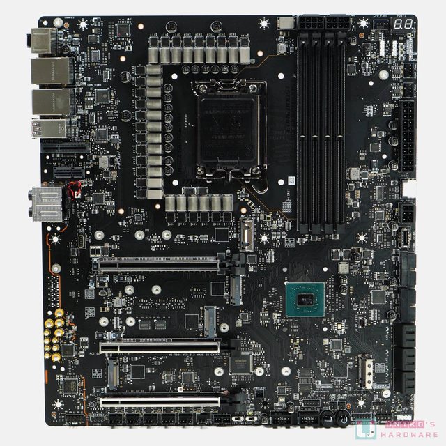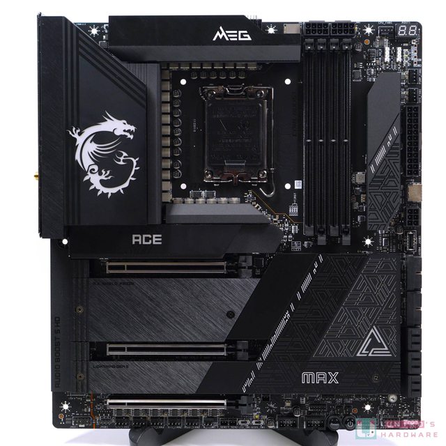 板。在過去出現的金色主題色在 Z790 ACE MAX 上化為黑和白色,回歸以往的暗黑風。由於