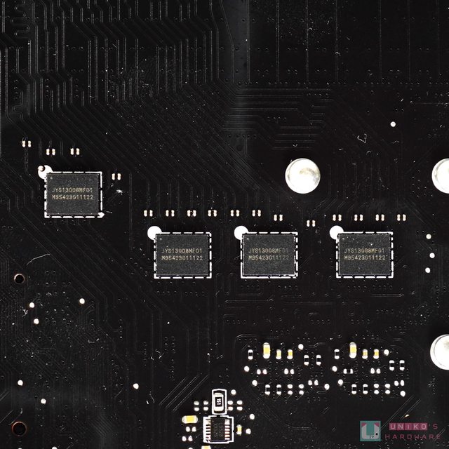 2 顆 MXIC MX25U25673G BIOS 晶片,PCB 上有實體切換。