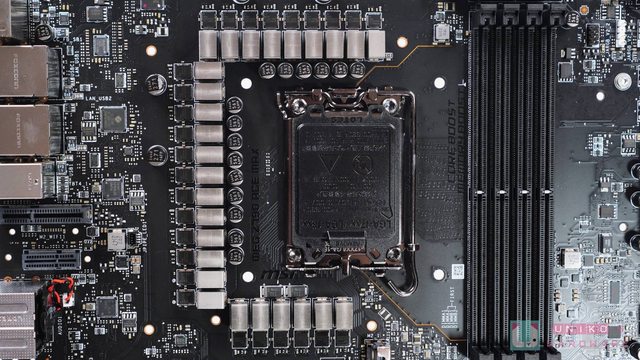 INTEL 最後一代 LGA 1700 插座,微星除了繼續堆砌 MLCC,也開了一個小洞為 LN2 極限超
