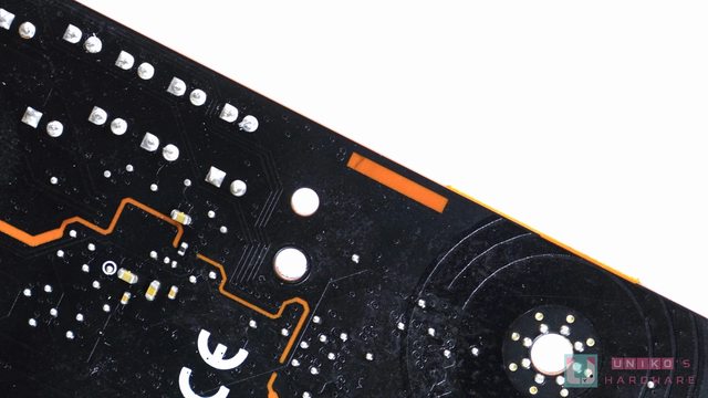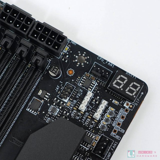 PCB 右上方有雙位的 DEBUG CODE LED、EZ DEBUG LED (四顆小燈珠),還有 1 個 7-PIN 的